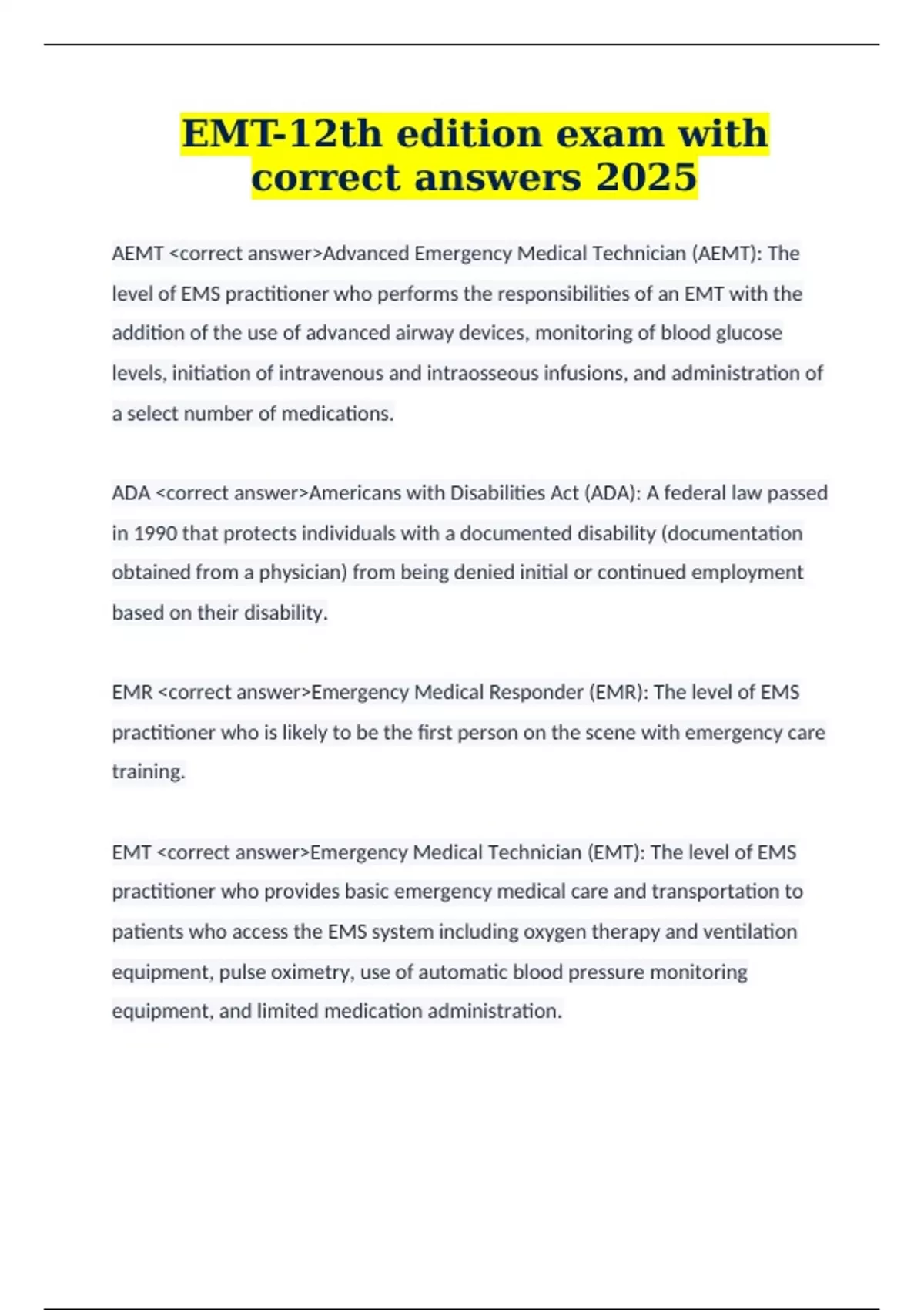EMT <correct answer>Emergency Medical Technician (EMT): The level of EMS