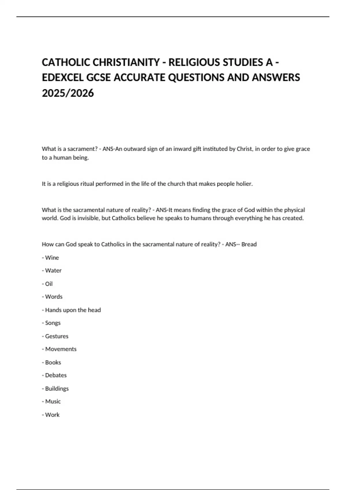 CATHOLIC CHRISTIANITY - RELIGIOUS STUDIES A -