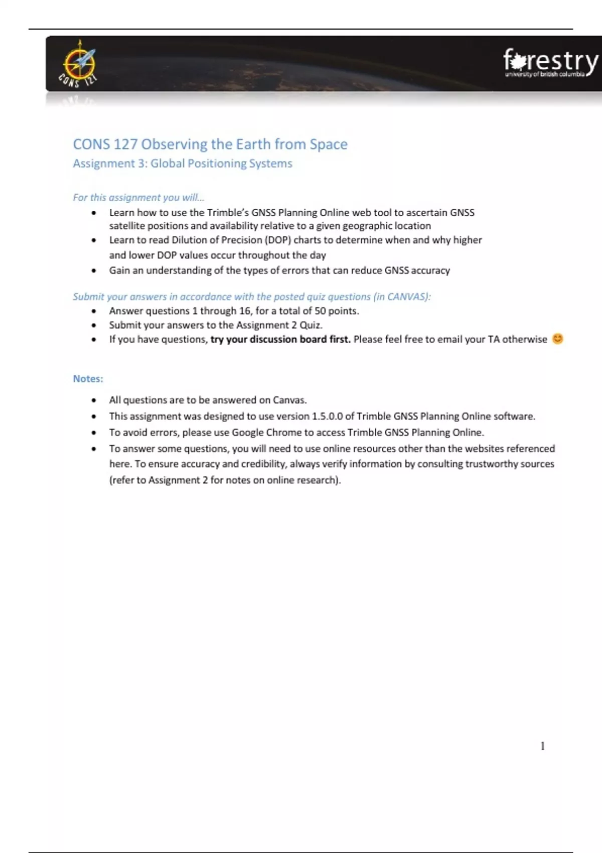 • This assignment was designed to use version 1.5.0.0 of Trimble GNSS Planning Online software.