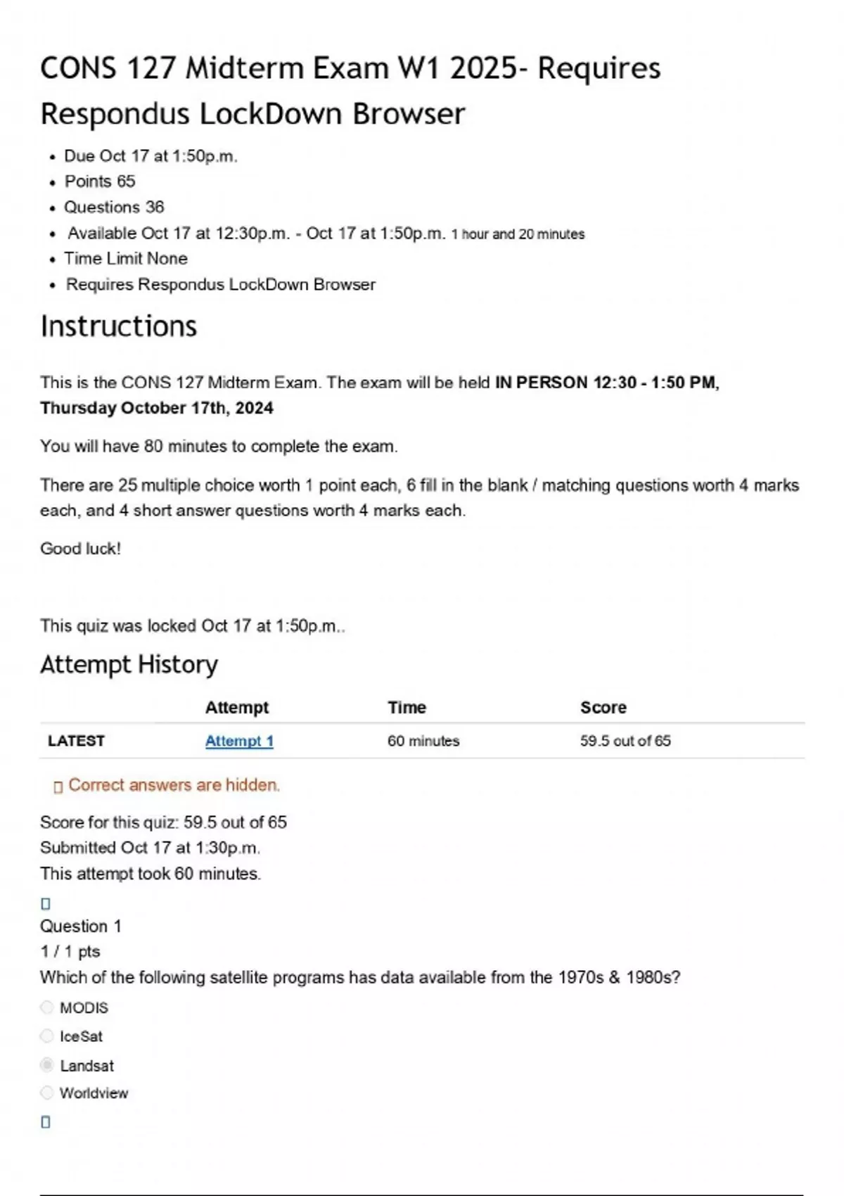 CONS 127 Midterm Exam | Questions and Answers | W1 2025- Requires Respondus LockDown Browser | 100% Correct - UBC.