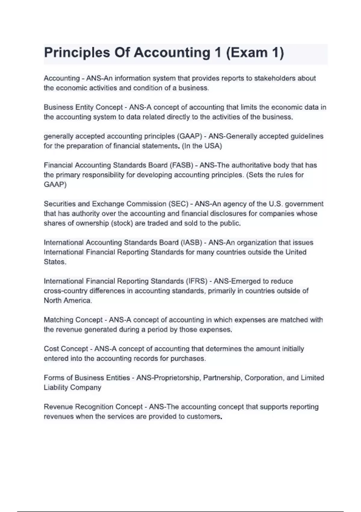 Principles Of Accounting 1 (Exam 1) (Latest 2025/ 2026 Update) Actual Exam Question and answers | Verified | 100% correctly solved | complete solutions | Graded A+.