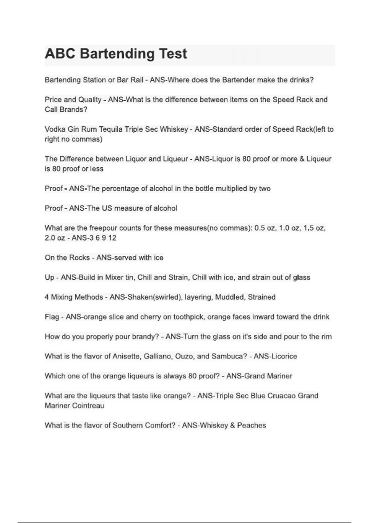 ABC Bartending/ ABC Bartending Test (Latest 2025 Update) Exam Review| Questions and Detailed Answers| 100% Verified Correct| Grade A+ (100% Pass) All Units Covered