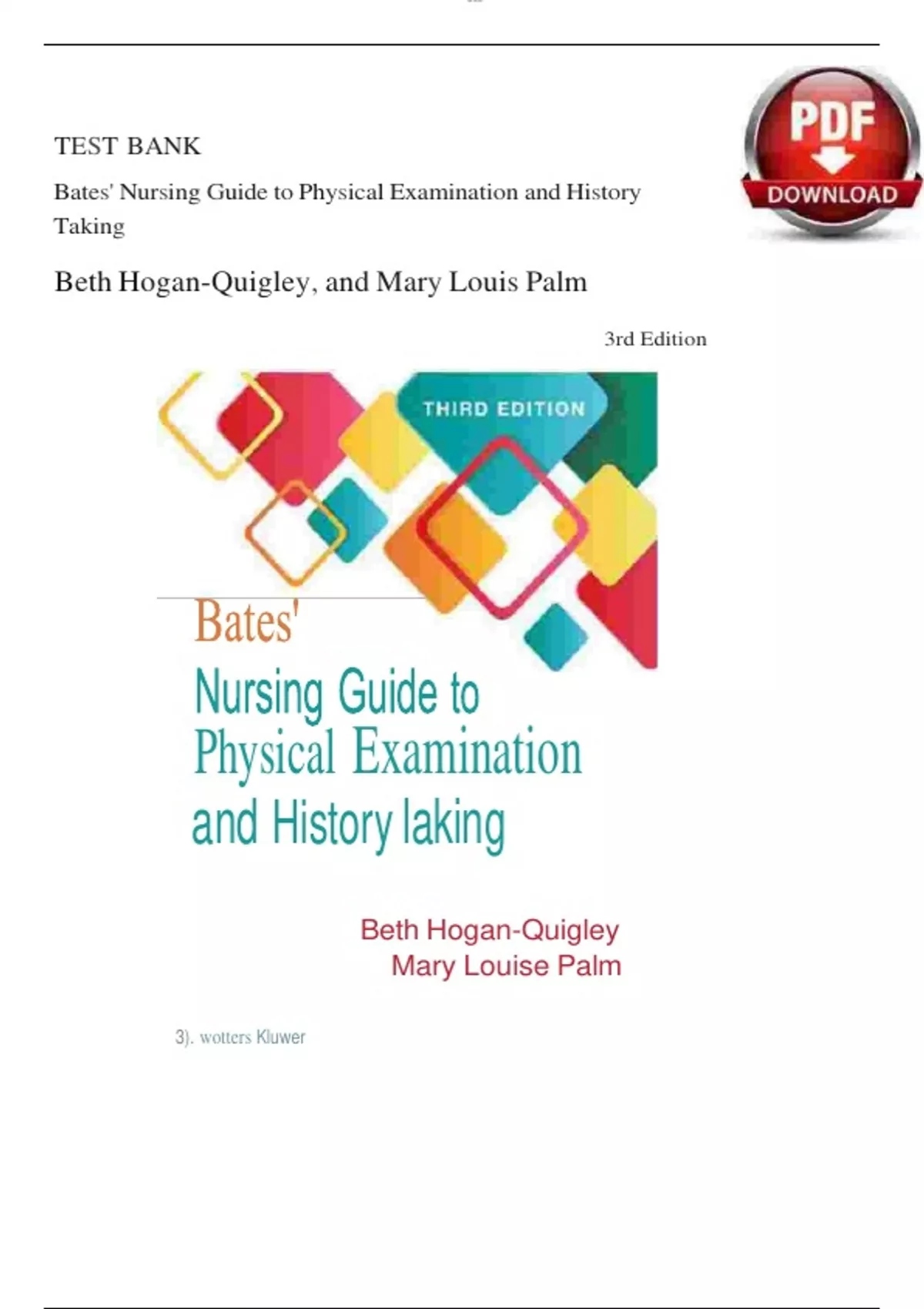 TEST BANK Bates' Nursing Guide to Physical Examination and History Taking Beth Hogan-Quigley, and Mary Louis Palm