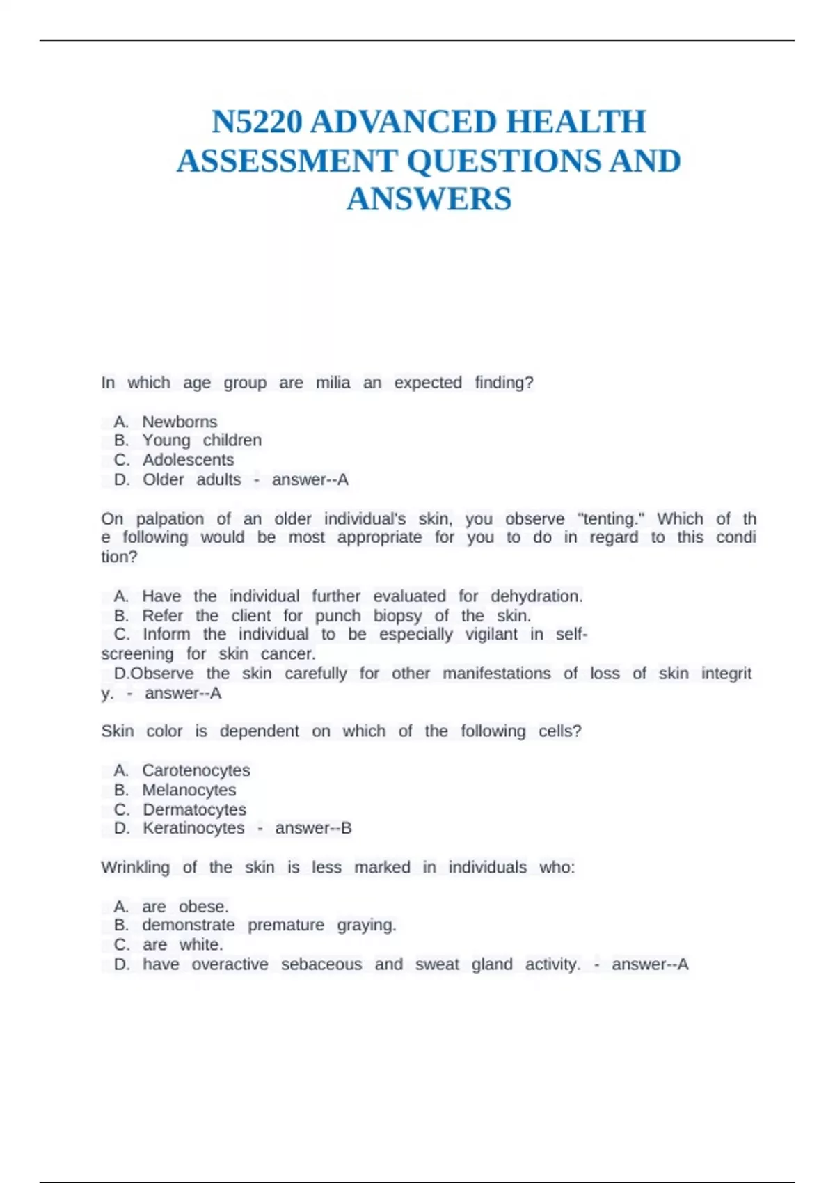 N5220 ADVANCED HEALTH ASSESSMENT QUESTIONS AND ANSWERS
