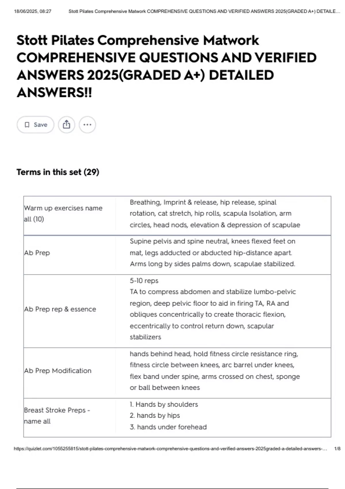 18/06/2025, 08:27 Stott Pilates Comprehensive Matwork COMPREHENSIVE QUESTIONS AND VERIFIED ANSWERS 2025(GRADED A+) DETAILE…