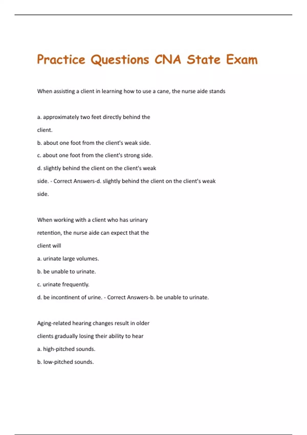 Practice Questions CNA State Exam
