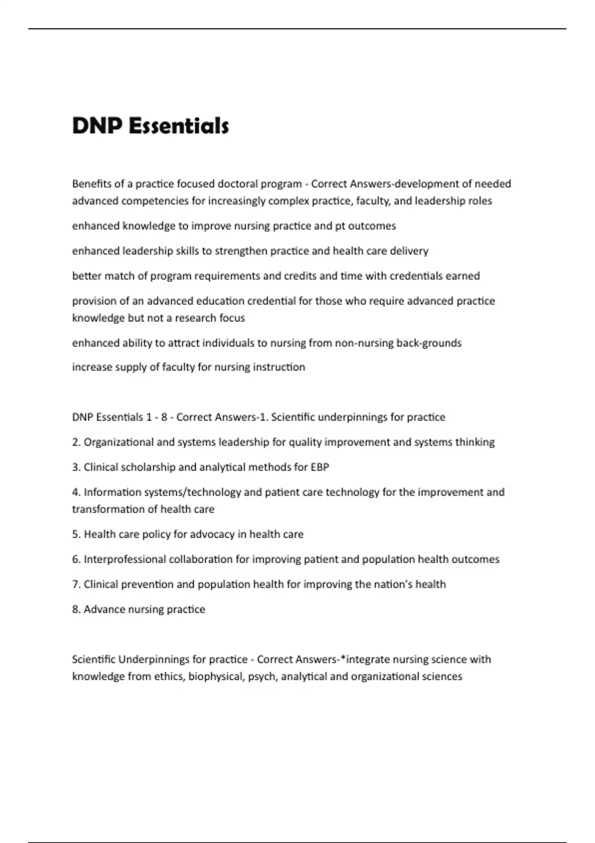 DNP Essentials 1 - 8 - Correct Answers-1. Scientific underpinnings for practice