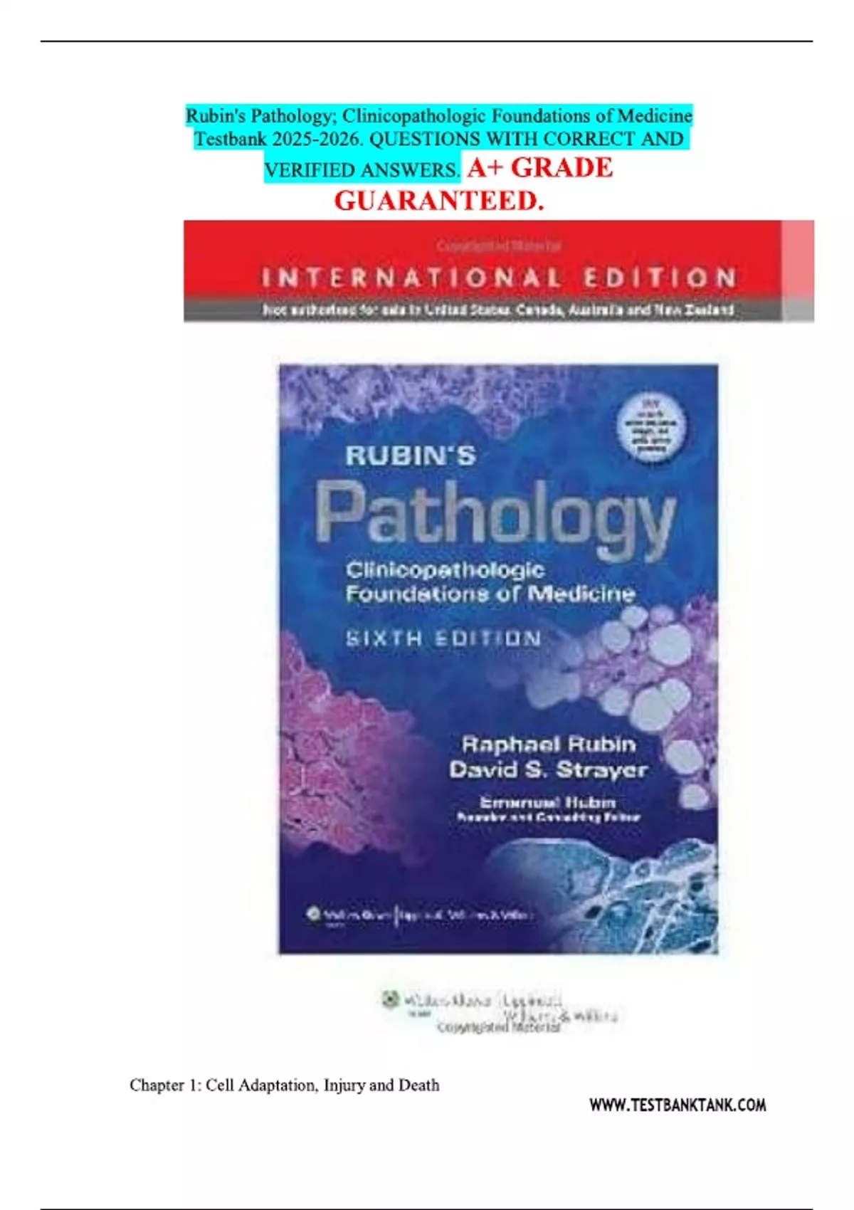 Rubin's Pathology; Clinicopathologic Foundations of Medicine Testbank . QUESTIONS WITH CORRECT AND VERIFIED ANSWERS. A+ GRADE GUARANTEED.