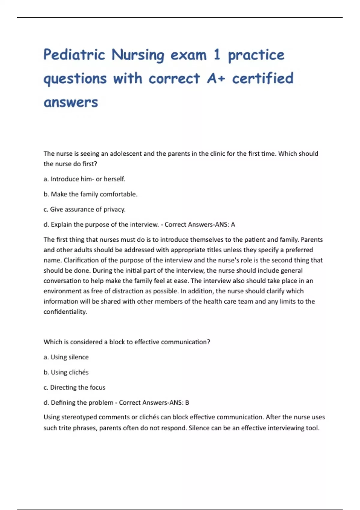 d. Assure the child that communication is private - Correct Answers-ANS: A