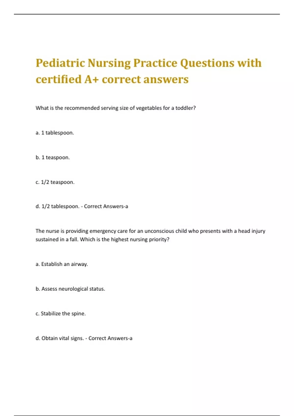 Get real nursing exam questions with certified answers. Perfect for quick revision and exam prep. Clear, accurate and easy to use. Package deals also available with 50 % offer. Study smart, pass fast!