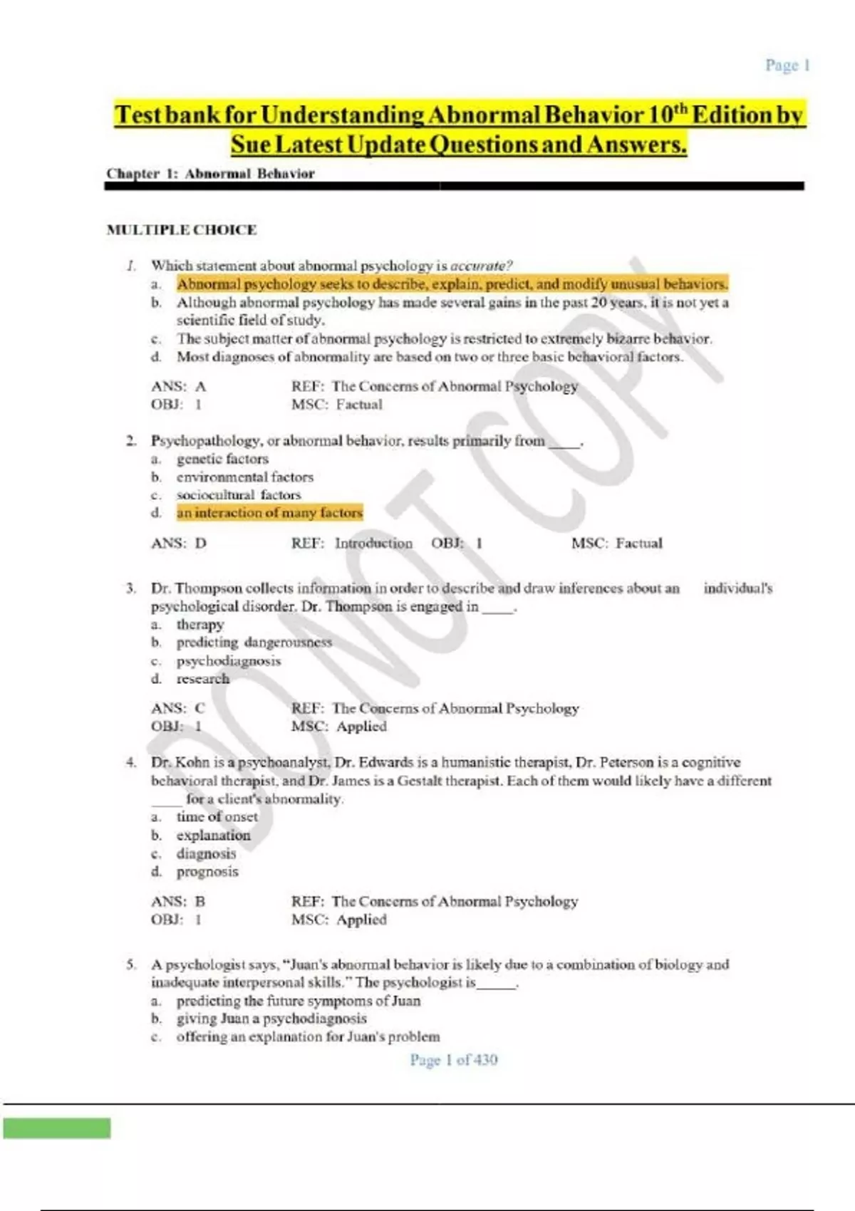 Test bank for Understanding Abnormal Behavior 10th Edition by Sue Latest Update Questions and Answers.Test bank for Understanding Abnormal Behavior 10th Edition by Sue Latest Update Questions and Answers.