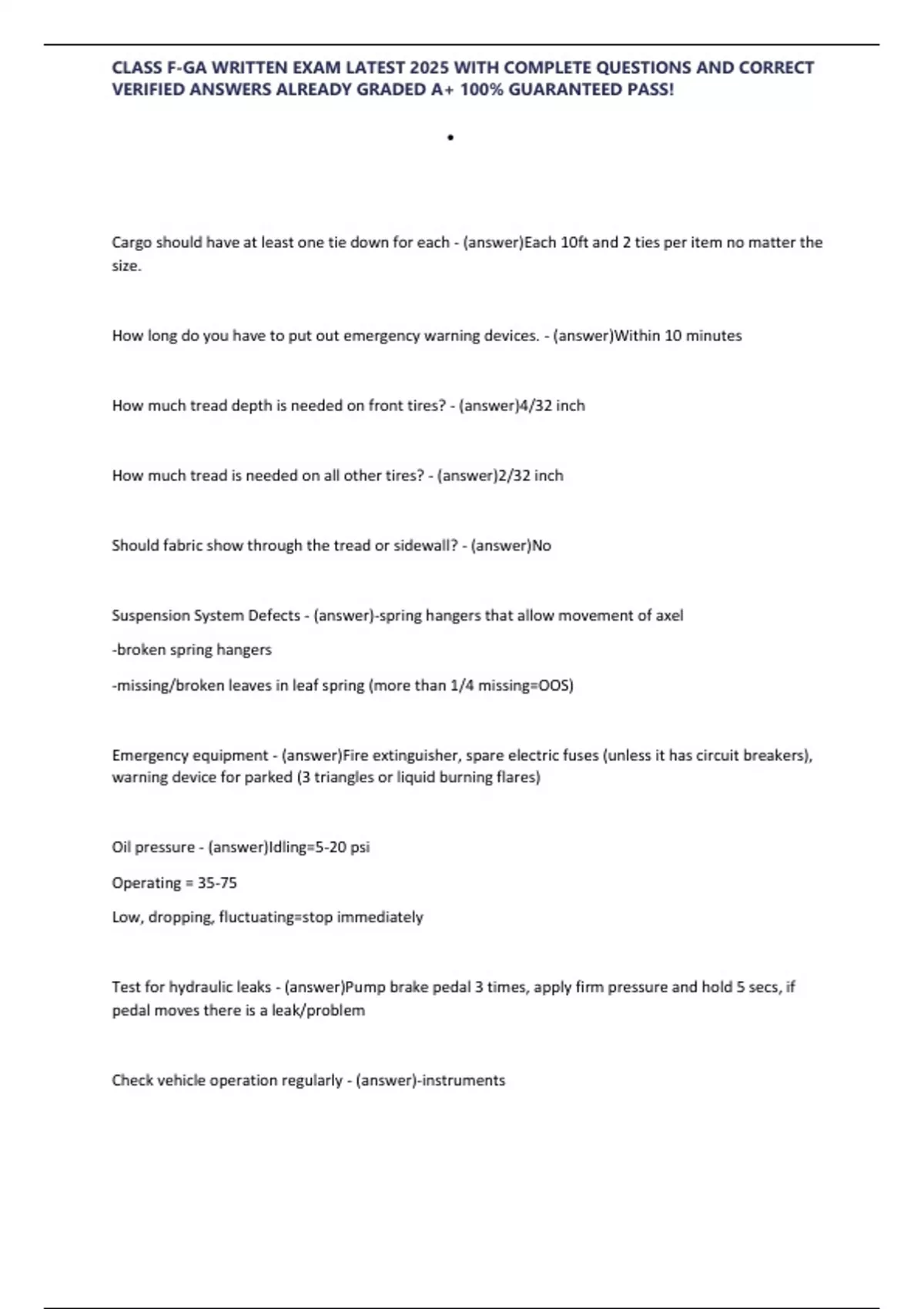 CLASS F-GA WRITTEN EXAM LATEST 2025 WITH COMPLETE QUESTIONS AND CORRECT