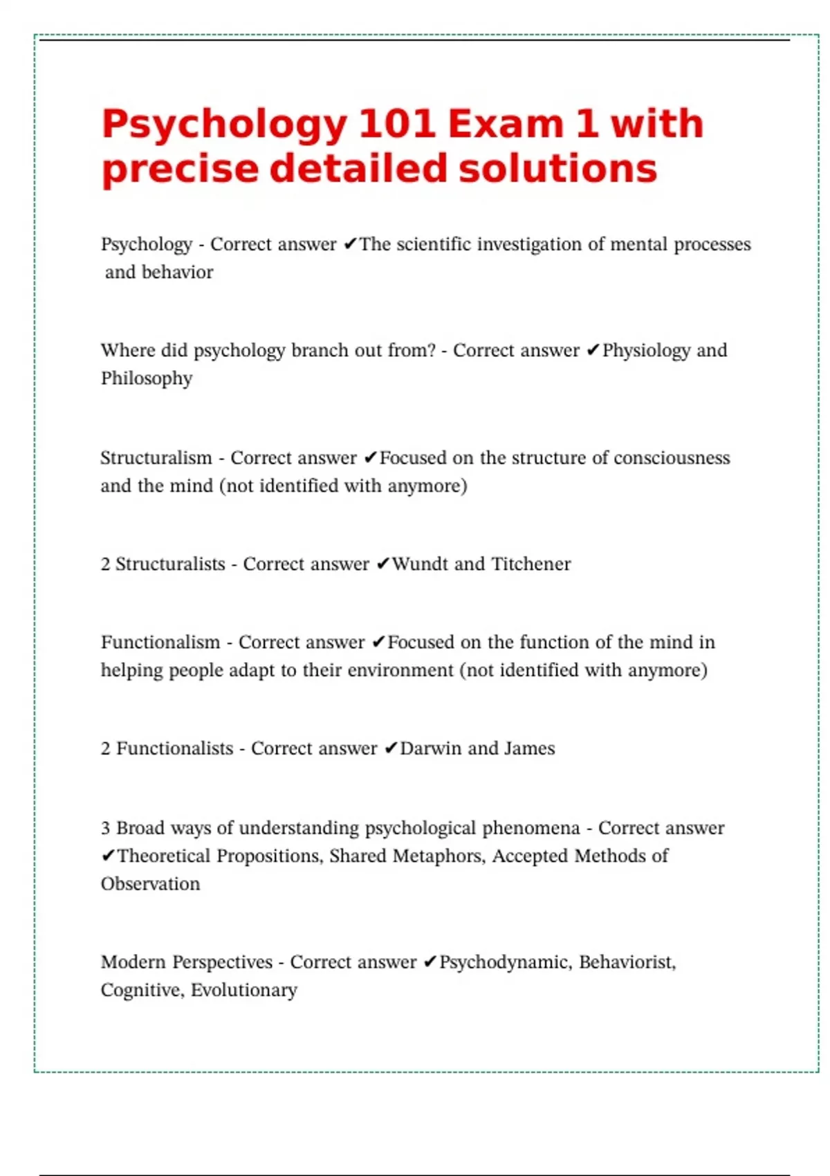 Psychology - Correct answer ✔The scientific investigation of mental processes