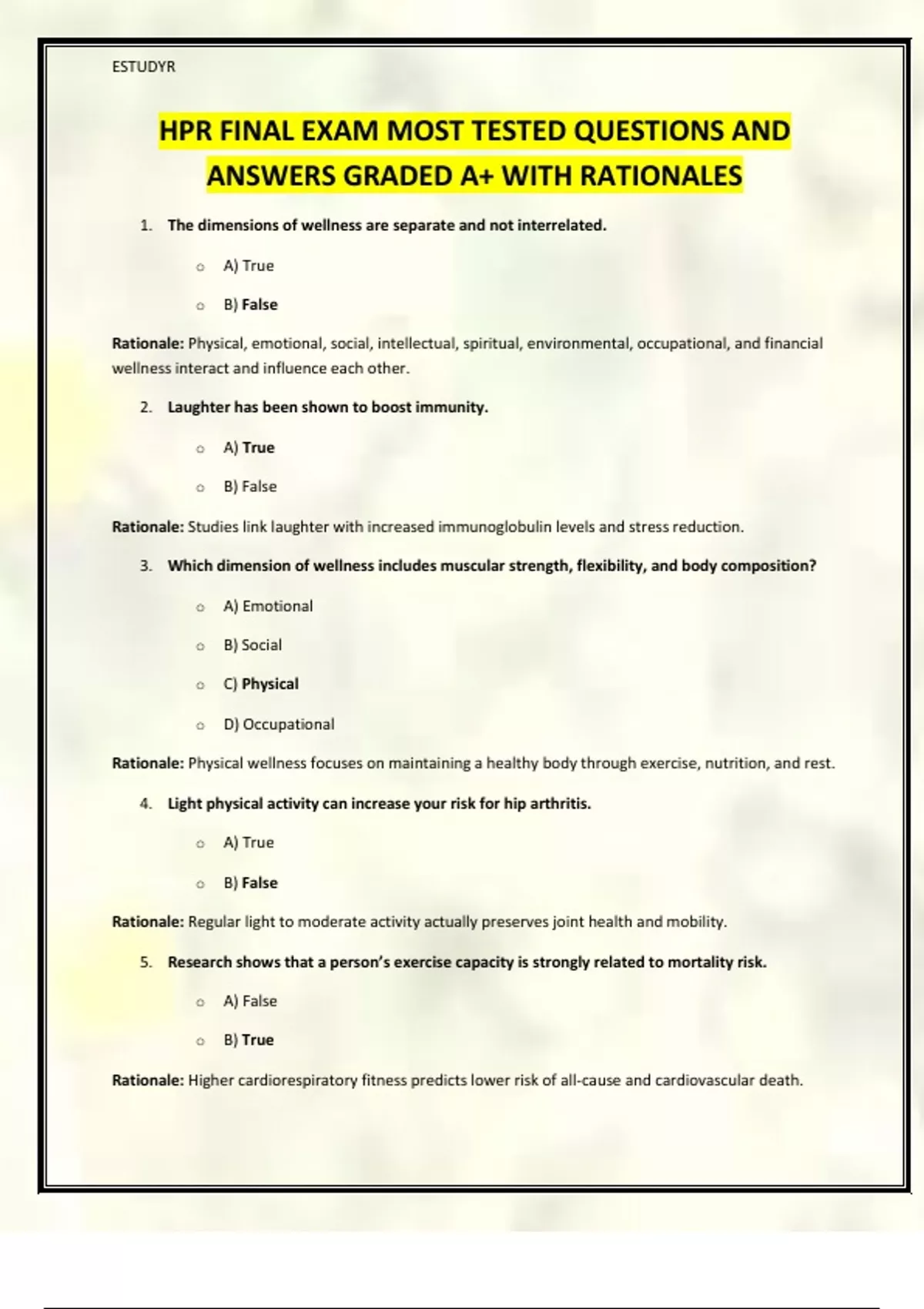 HPR FINAL EXAM MOST TESTED QUESTIONS AND