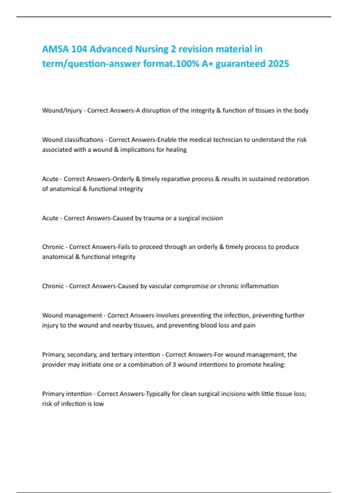 Get real nursing exam questions with certified answers. Perfect for quick revision and exam prep. Clear, accurate and easy to use. Package deals also available with 50 % offer. Study smart, pass fast!