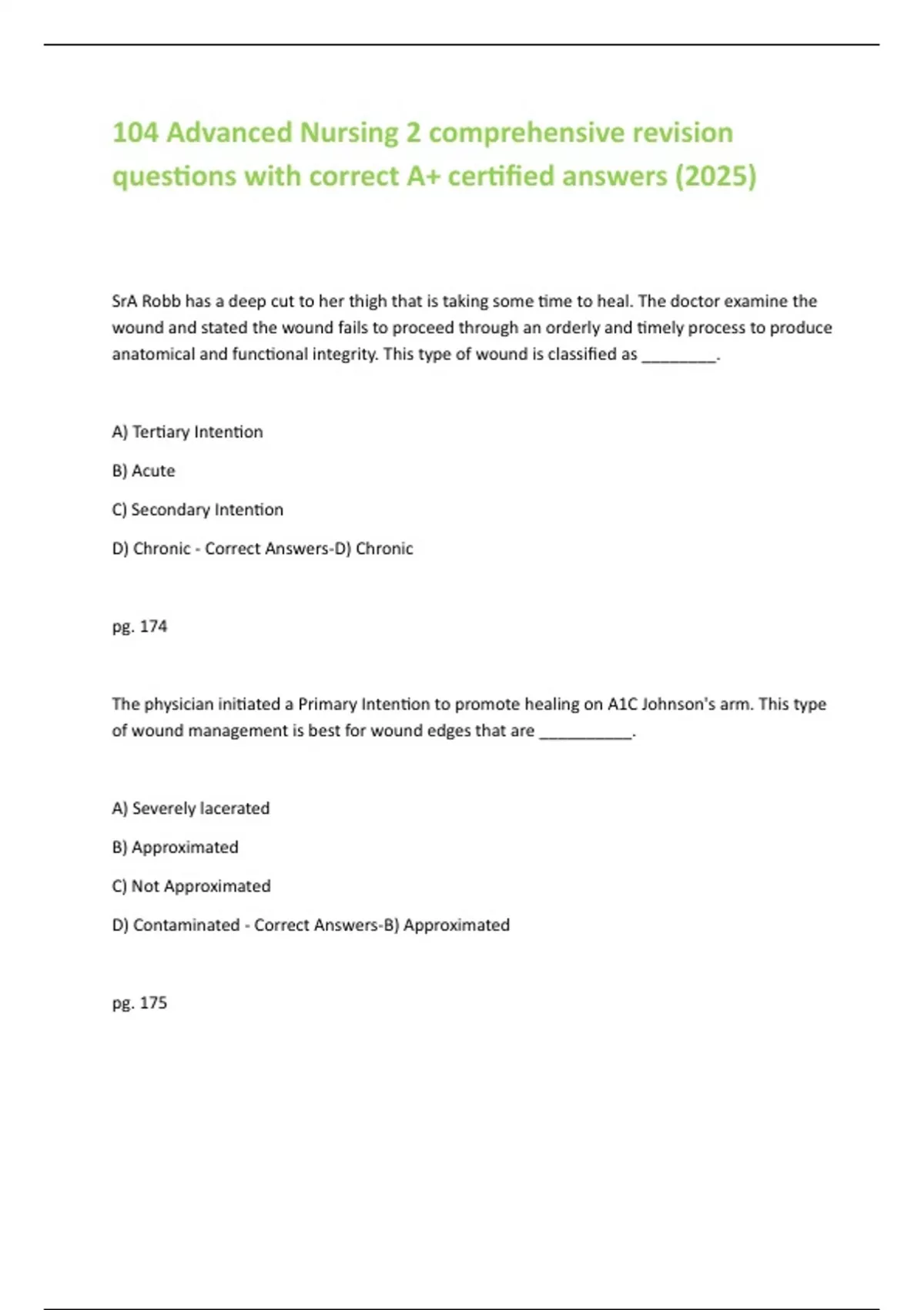 Get real nursing exam questions with certified answers. Perfect for quick revision and exam prep. Clear, accurate and easy to use. Package deals also available with 50 % offer. Study smart, pass fast!