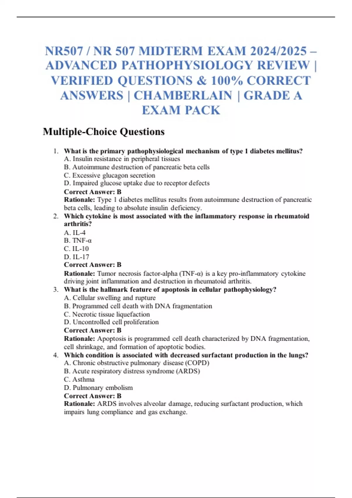 NR507 / NR 507 MIDTERM EXAM 2024/2025 – ADVANCED PATHOPHYSIOLOGY REVIEW | VERIFIED QUESTIONS & 100% CORRECT ANSWERS | CHAMBERLAIN | GRADE A EXAM PACK