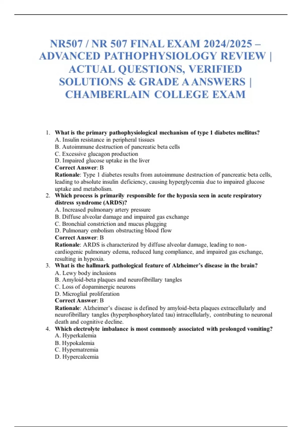 NR507 / NR 507 FINAL EXAM 2024/2025 – ADVANCED PATHOPHYSIOLOGY REVIEW | ACTUAL QUESTIONS, VERIFIED SOLUTIONS & GRADE A ANSWERS | CHAMBERLAIN COLLEGE EXAM