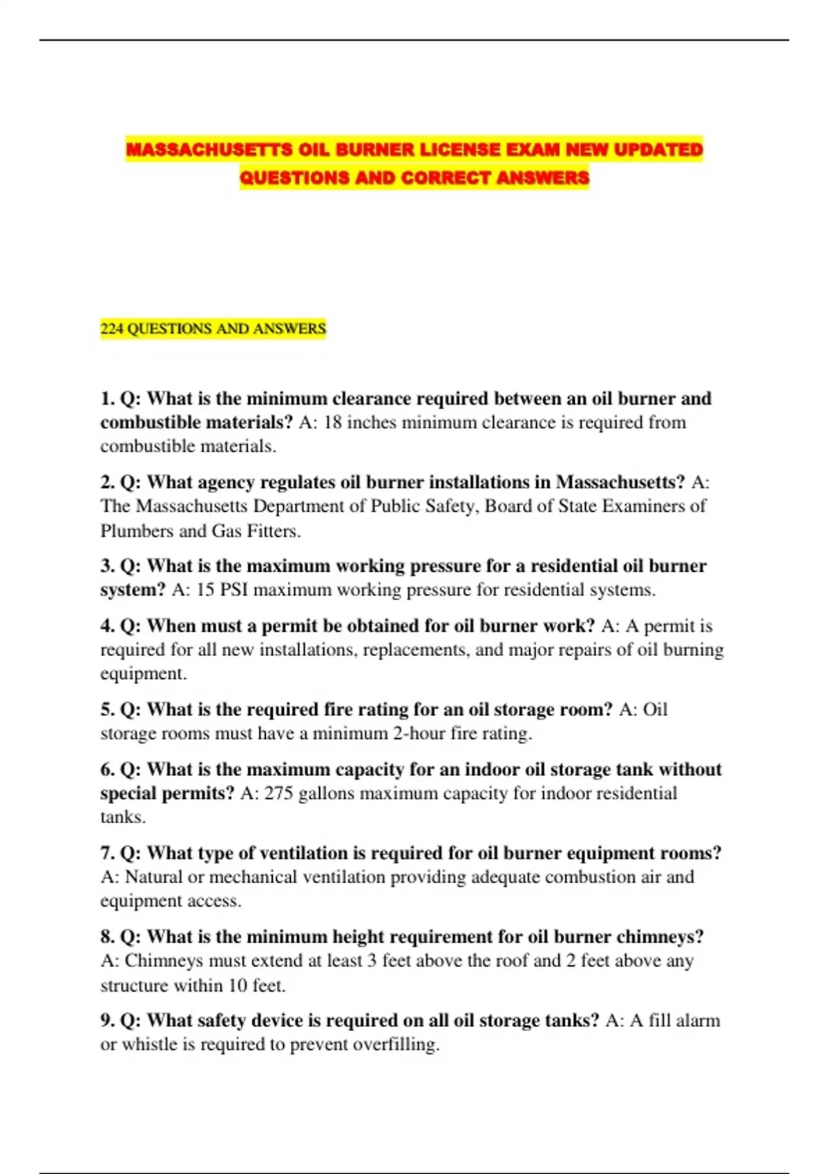 MASSACHUSETTS OIL BURNER LICENSE EXAM NEW UPDATED