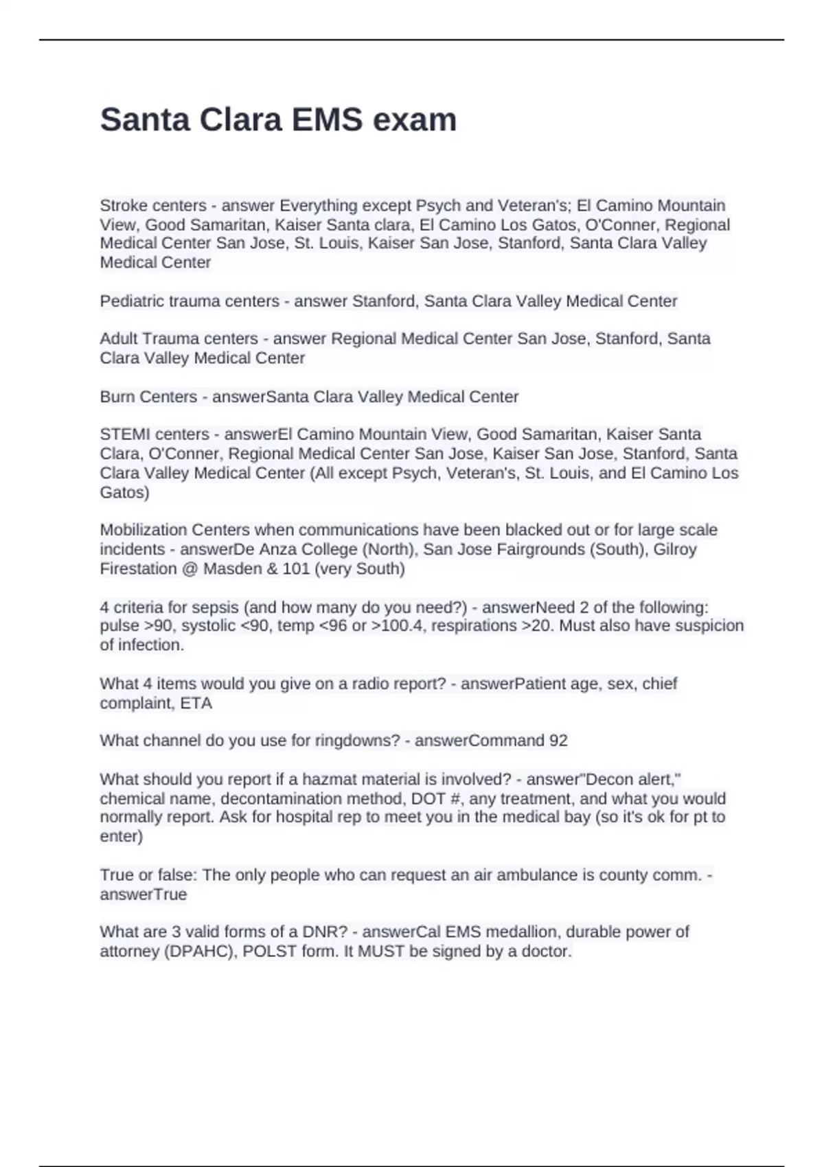 Santa Clara EMS exam