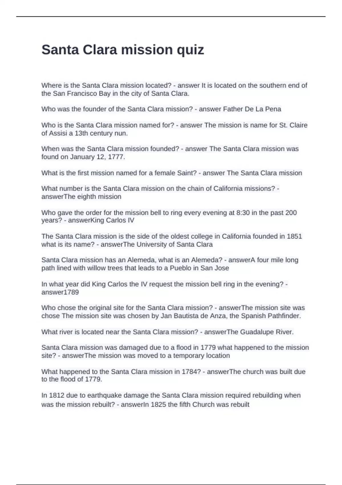 When was the Santa Clara mission founded? - answer The Santa Clara mission was