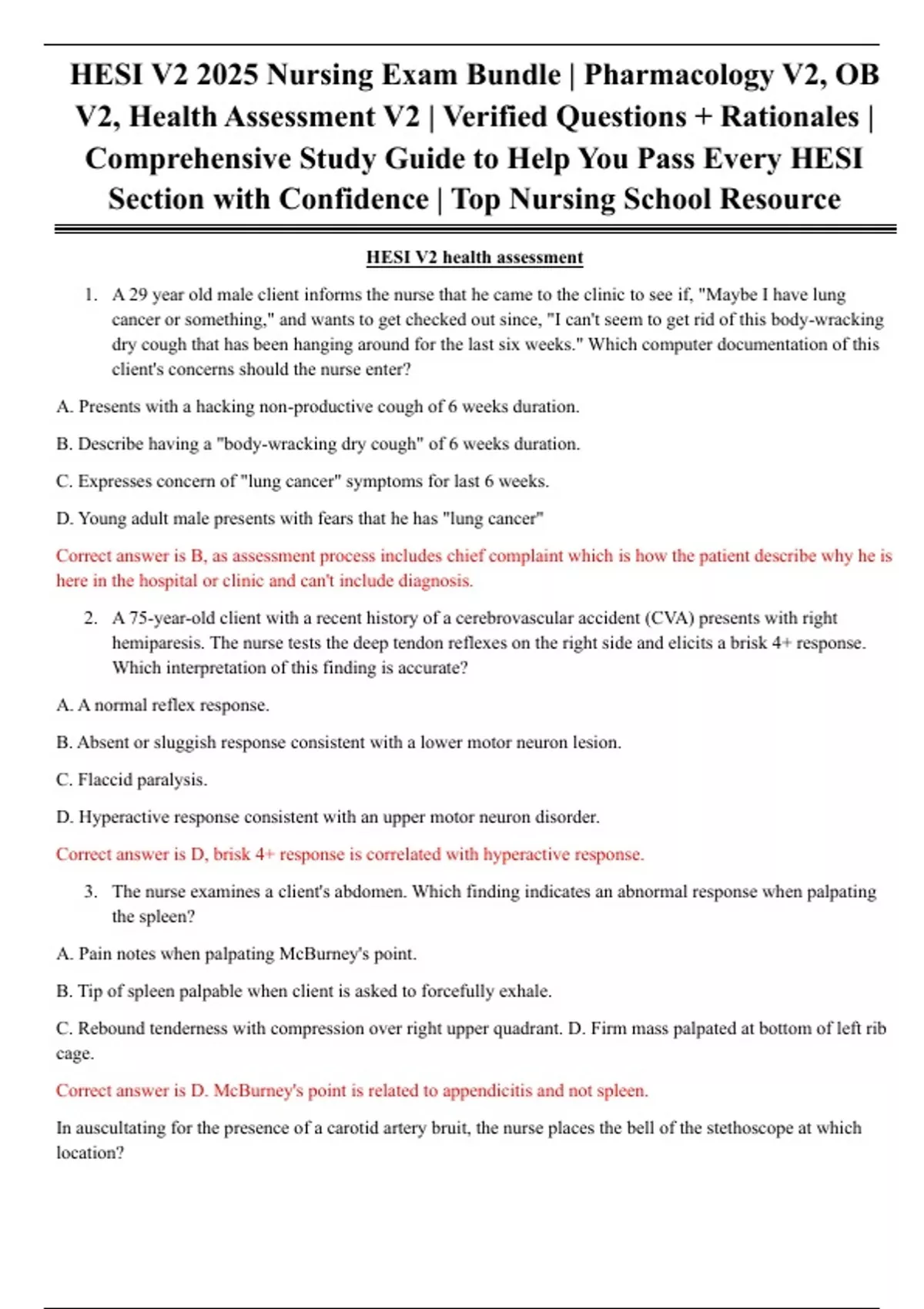 V2, Health Assessment V2 | Verified Questions + Rationales |