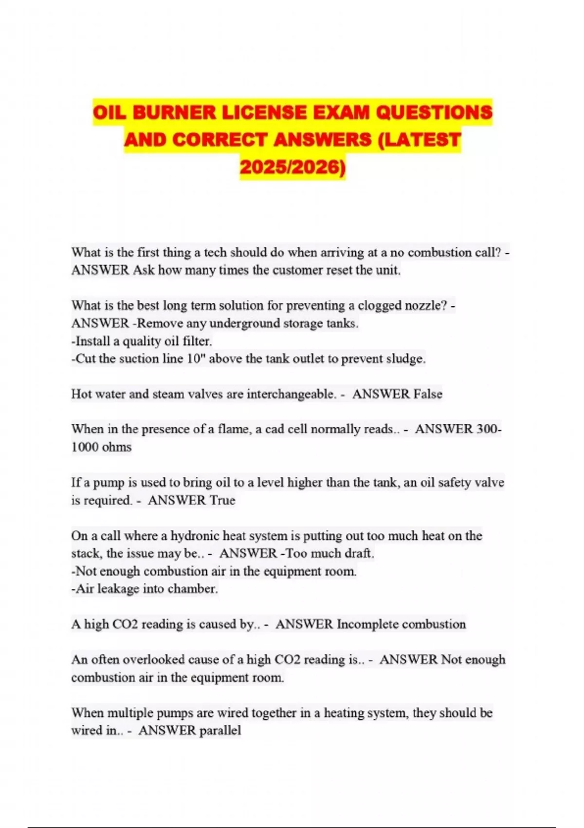 OIL BURNER LICENSE EXAM QUESTIONS AND CORRECT ANSWERS (LATEST 2025/2026)...