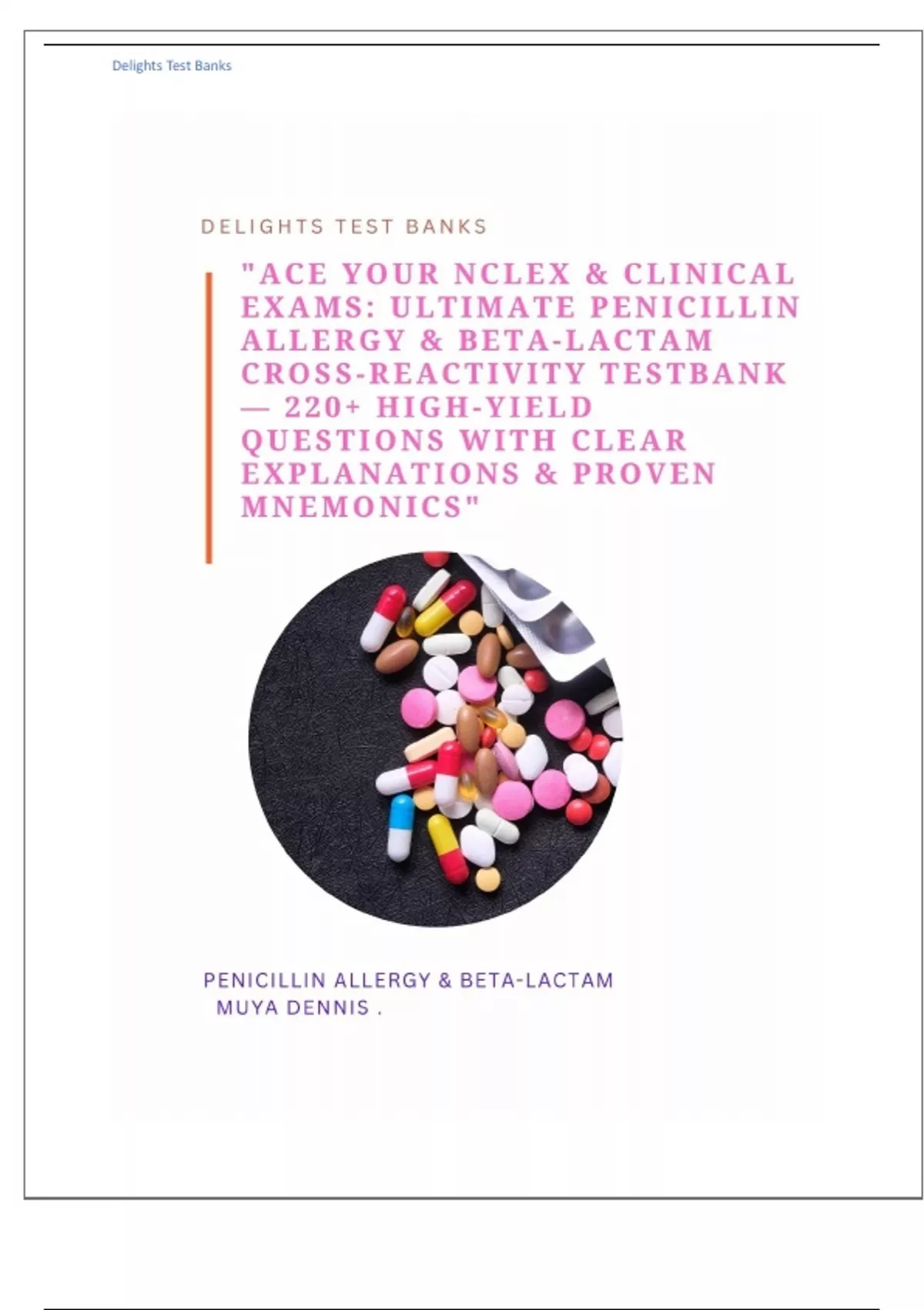 Ace Your NCLEX & Clinical Exams: Ultimate Penicillin Allergy & Beta-Lactam Cross-Reactivity Testbank – 220+ High-Yield Questions with Rationales, Mnemonics & Pharmacology Pearls"