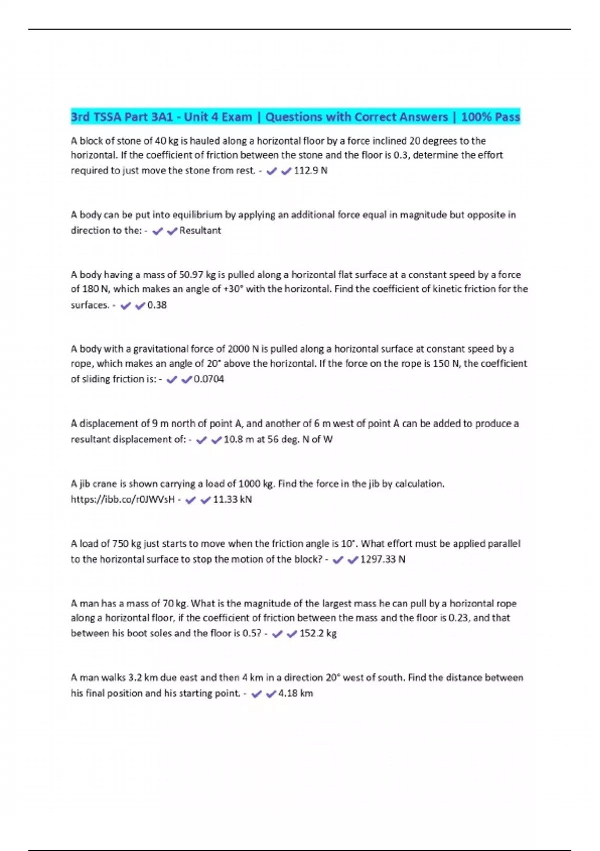 3rd TSSA Part 3A1 - Unit 4 Exam | Questions with Correct Answers | 100% Pass
