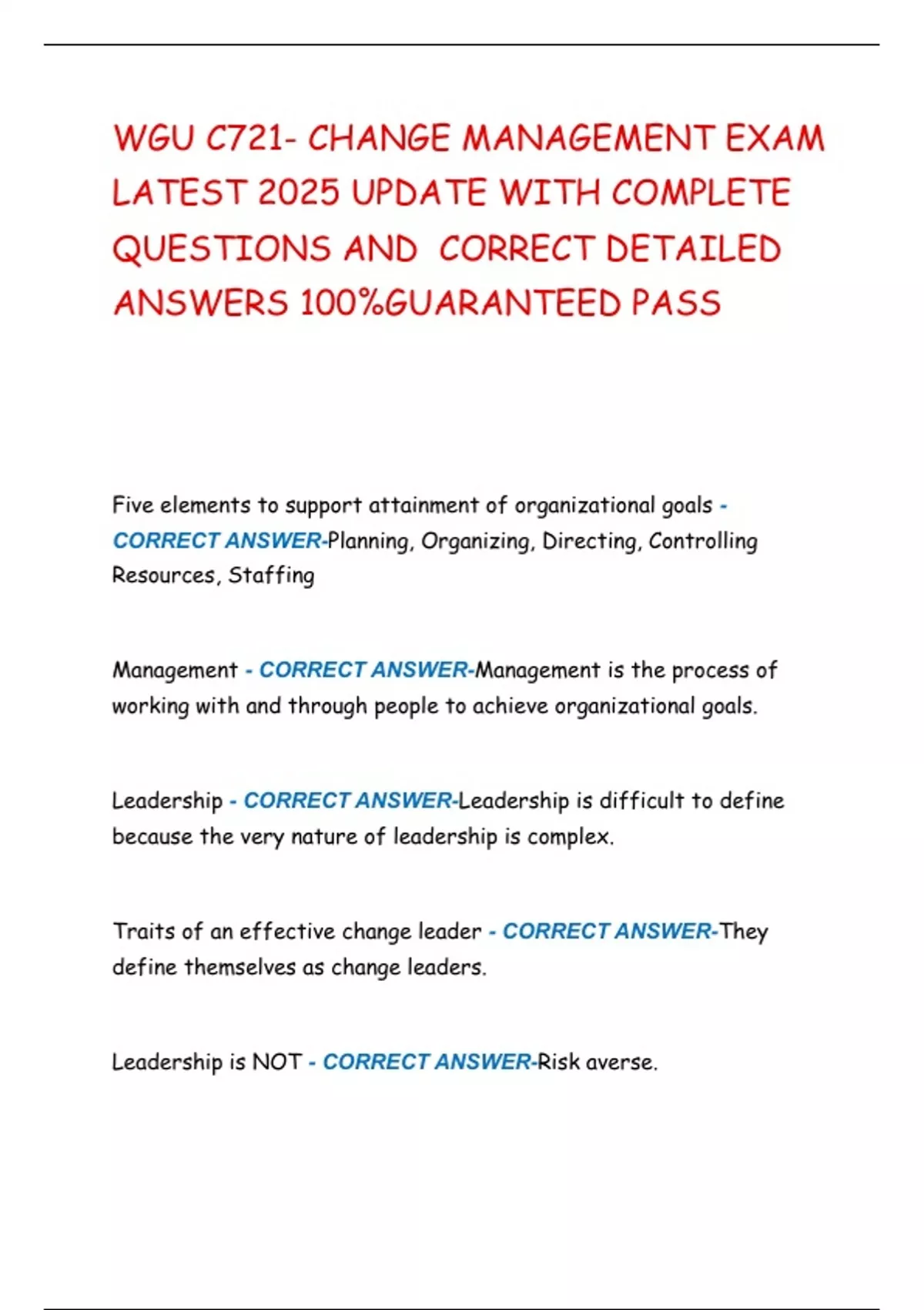 , A Change Management Specialist - CORRECT ANSWER-Helps to align