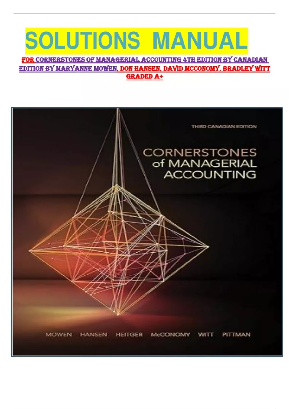 SOLUTIONS MANUAL FOR CORNERSTONES OF MANAGERIAL ACCOUNTING 4TH EDITION BY CANADIAN EDITION BY MARYANNE MOWEN, DON HANSEN, DAVID MCCONOMY, BRADLEY WITT GRADED A+