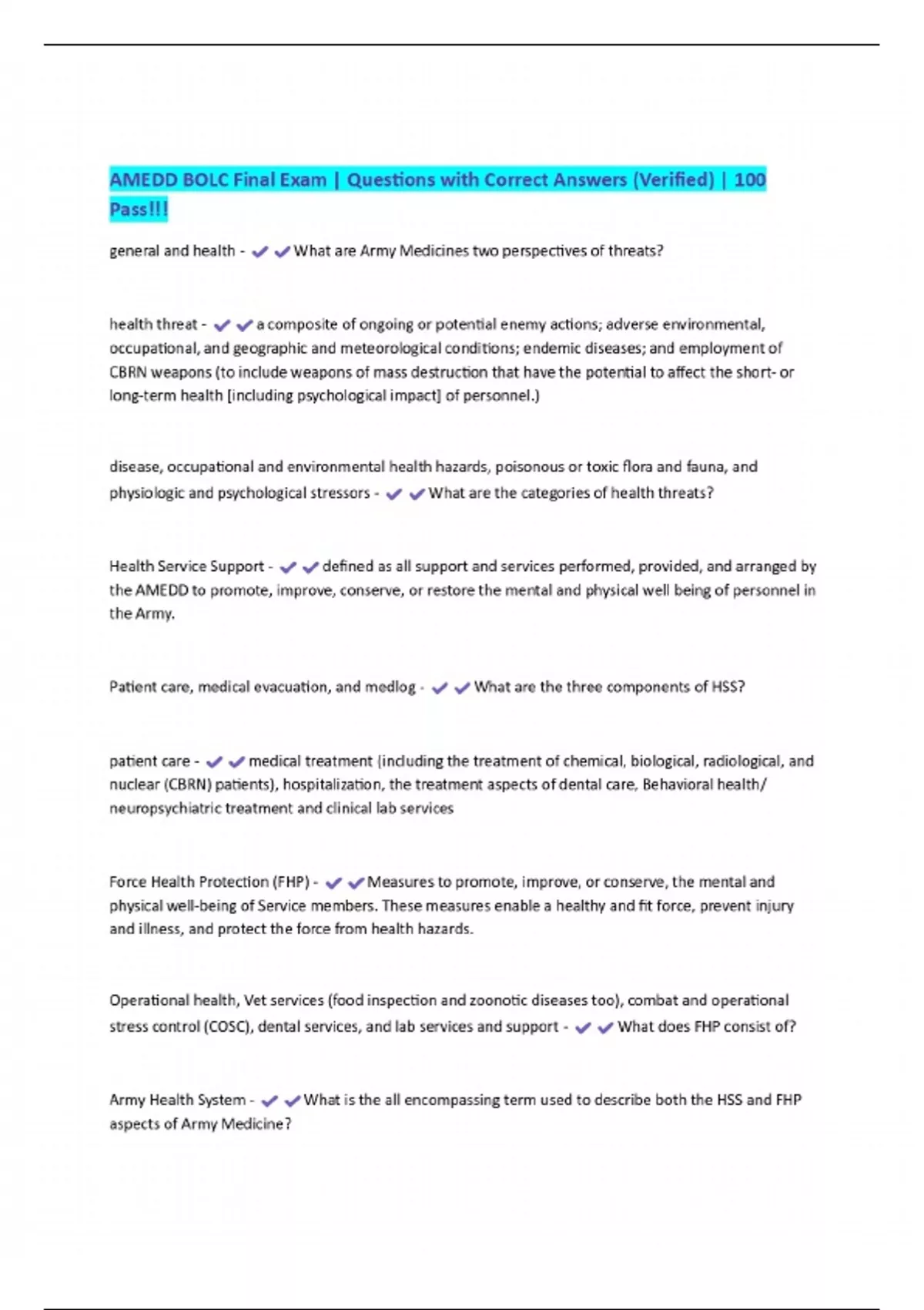 AMEDD BOLC Final Exam | Questions with Correct Answers (Verified) | 100 Pass!!!