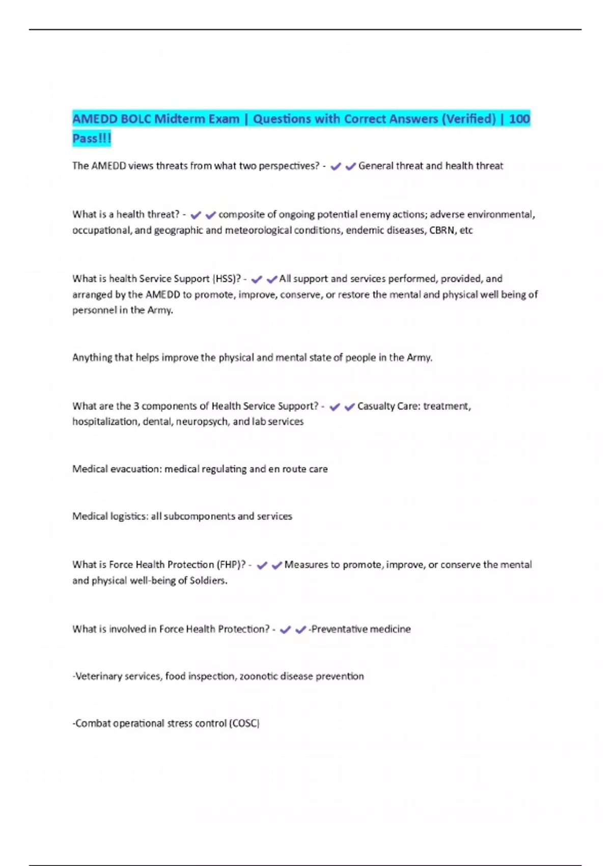 AMEDD BOLC Midterm Exam | Questions with Correct Answers (Verified) | 100 Pass!!!