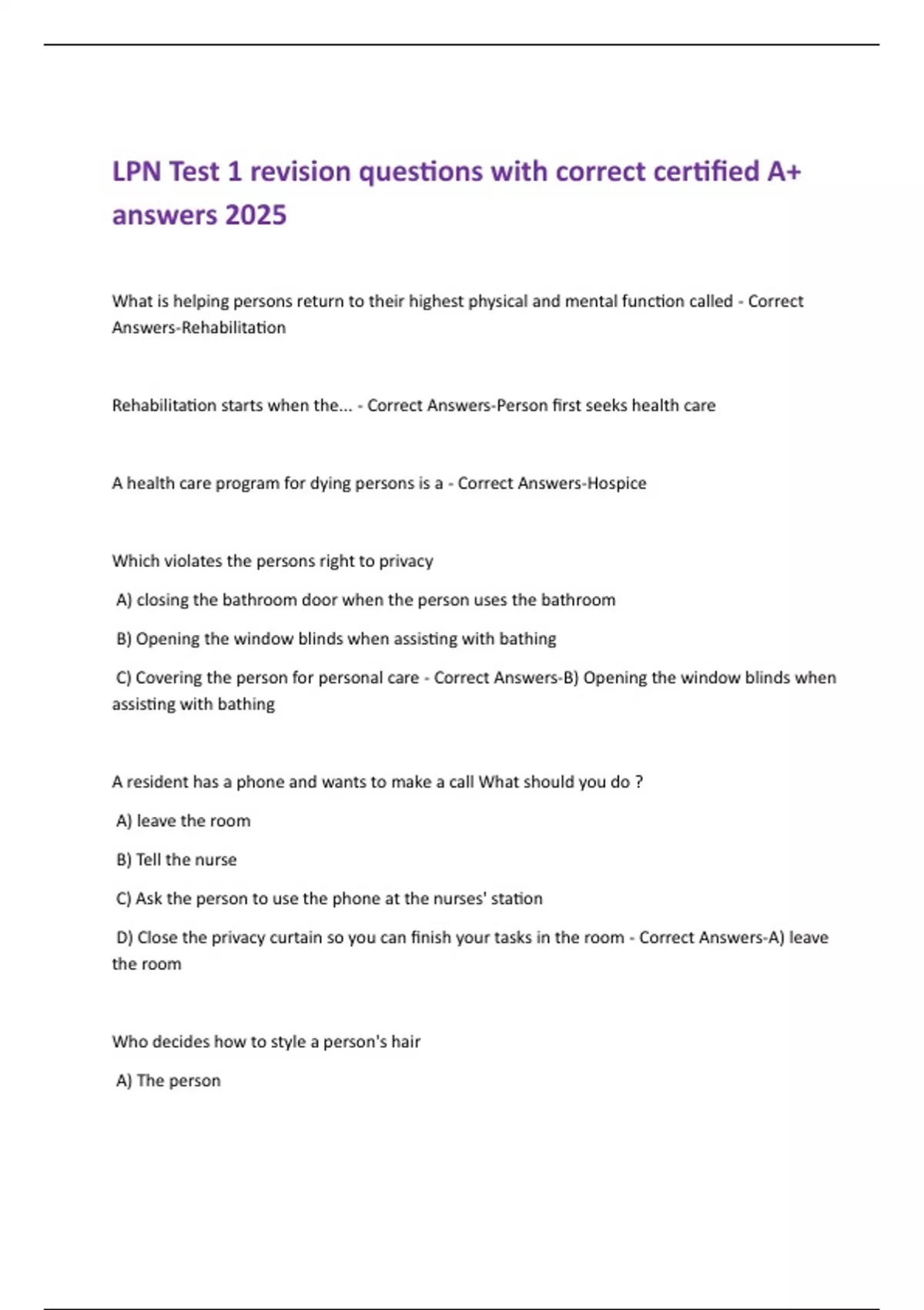 D) Looking through the persons belongings - Correct Answers-B) Closing the privacy curtain