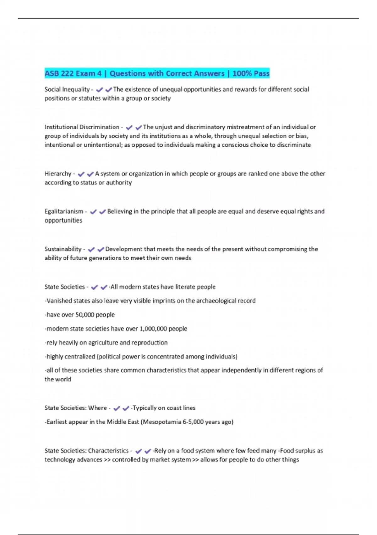 ASB 222 Exam 4 | Questions with Correct Answers | 100% Pass