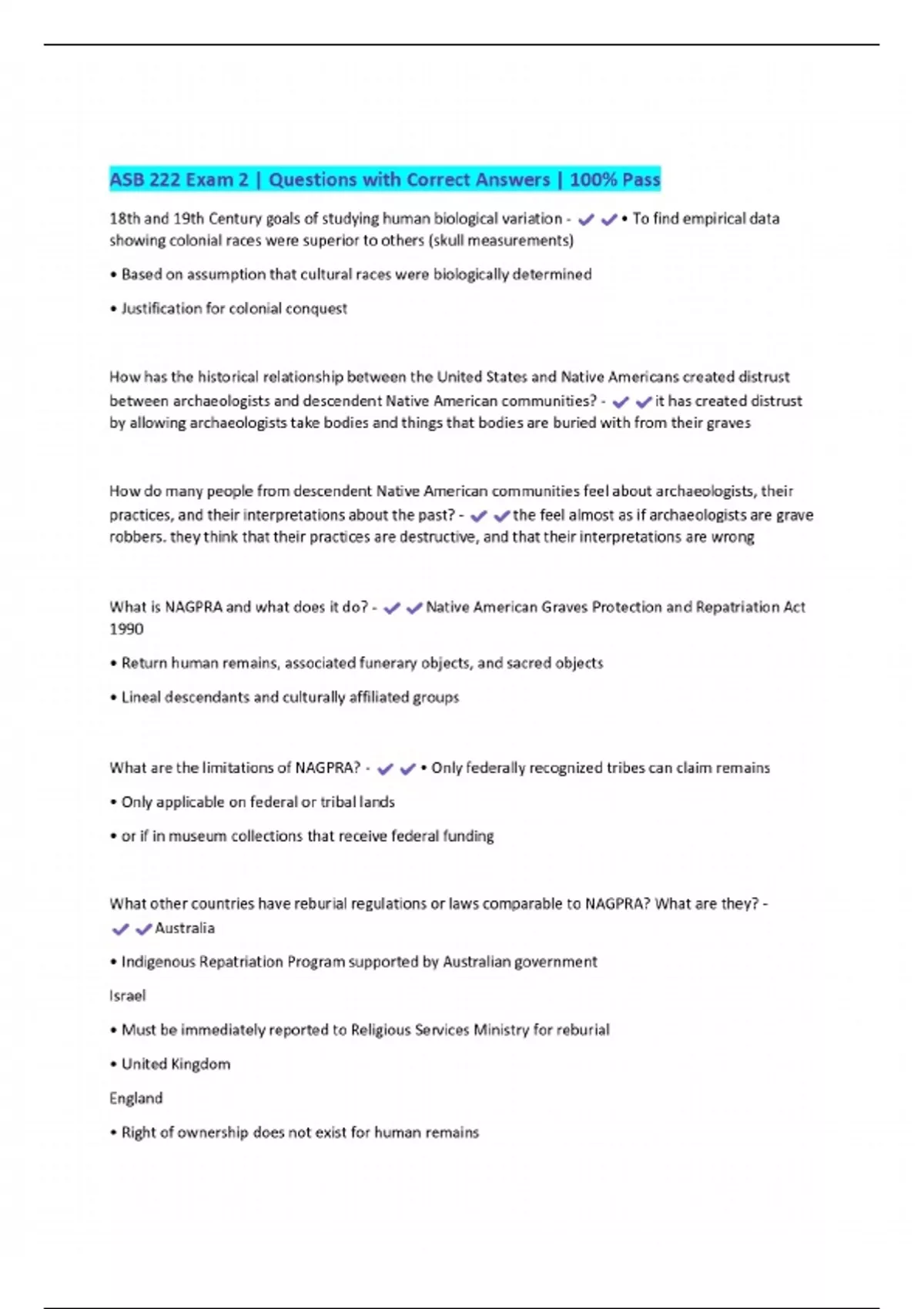 ASB 222 Exam 2 | Questions with Correct Answers | 100% Pass