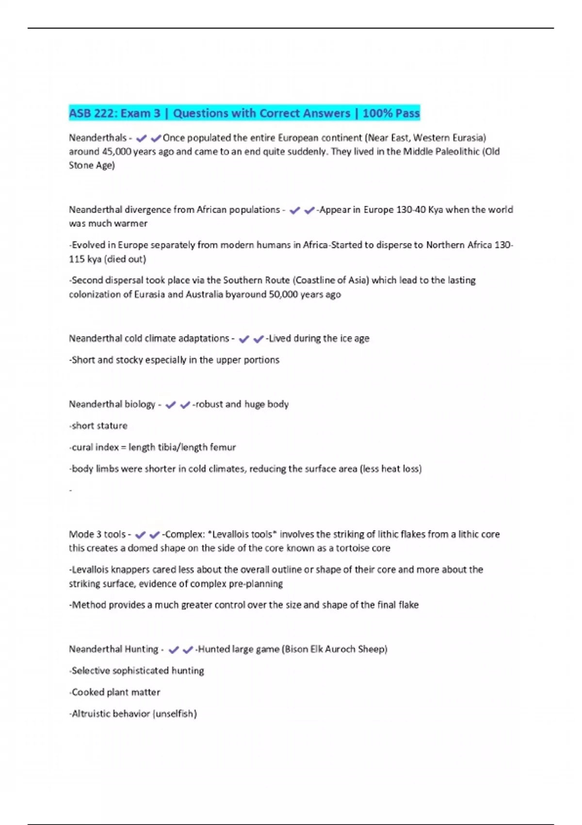 ASB 222: Exam 3 | Questions with Correct Answers | 100% Pass