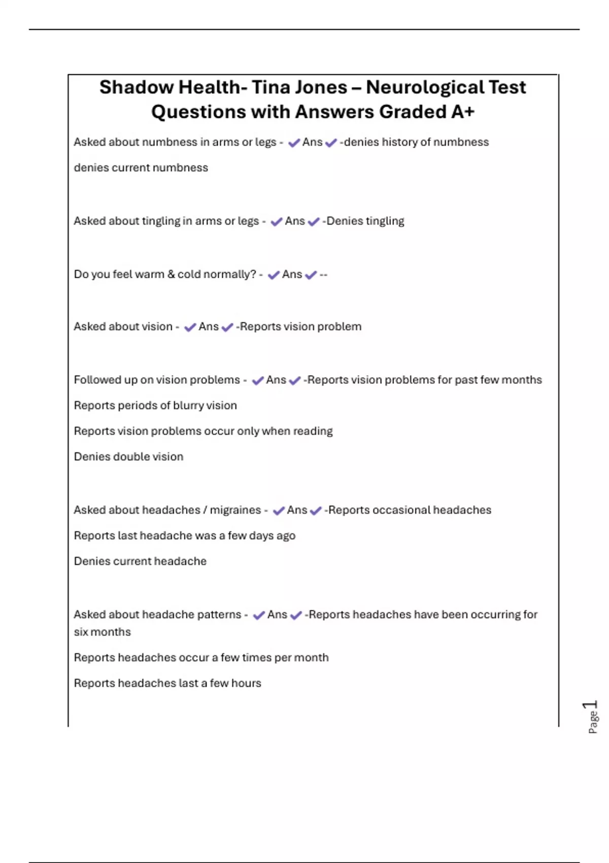 Asked about headache patterns - Ans -Reports headaches have been occurring for