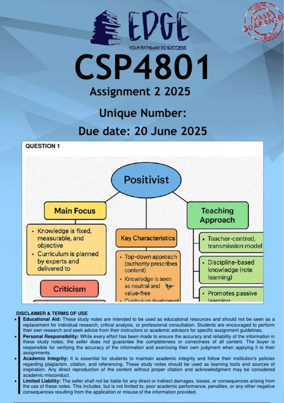 CSP4801 Assignment 2 (ANSWERS) 2025 - DISTINCTION GUARANTEED