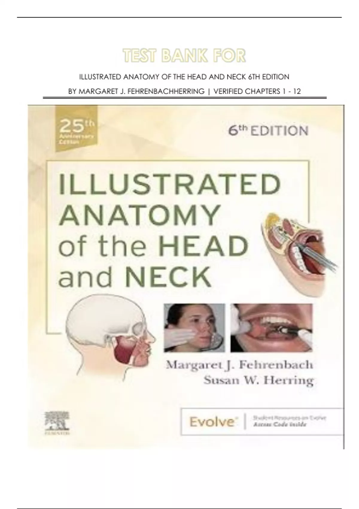 TEST BANK FOR ILLUSTRATED ANATOMY OF THE HEAD AND NECK 6TH EDITION BY MARGARET J. FEHRENBACHHERRING | VERIFIED CHAPTERS 1 - 12