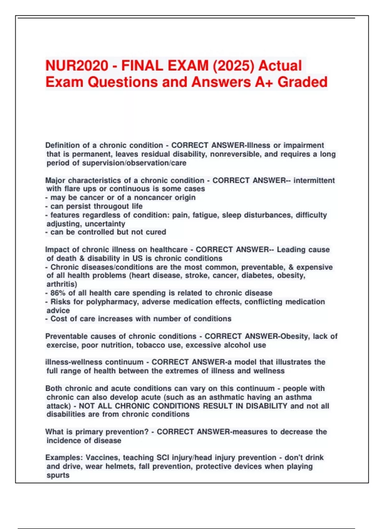 Preventable .causes .of .chronic .conditions .- .CORRECT .ANSWER-Obesity, .lack .of