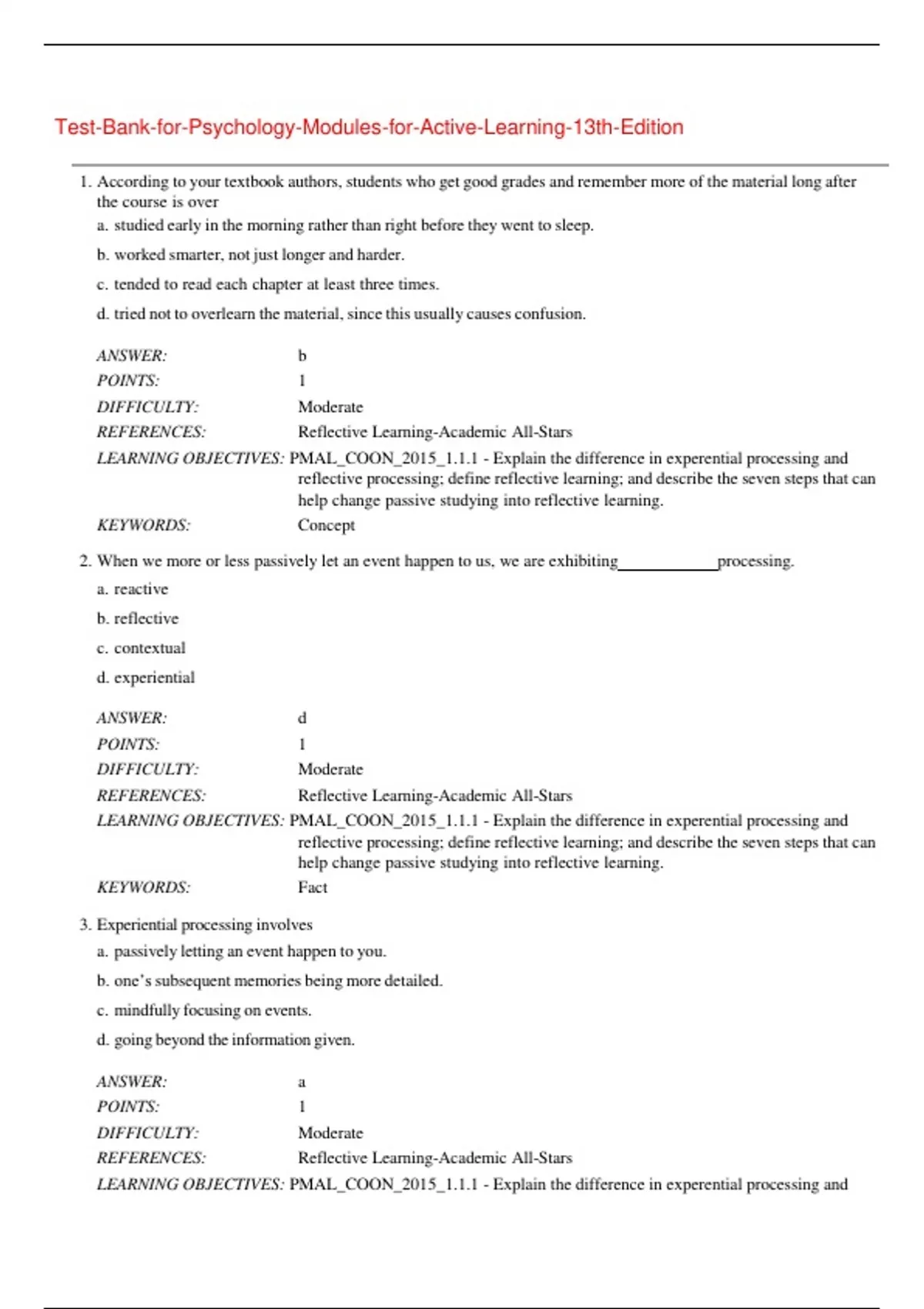 LEARNING OBJECTIVES: PMAL_COON_2015_1.1.1 - Explain the difference in experential processing and