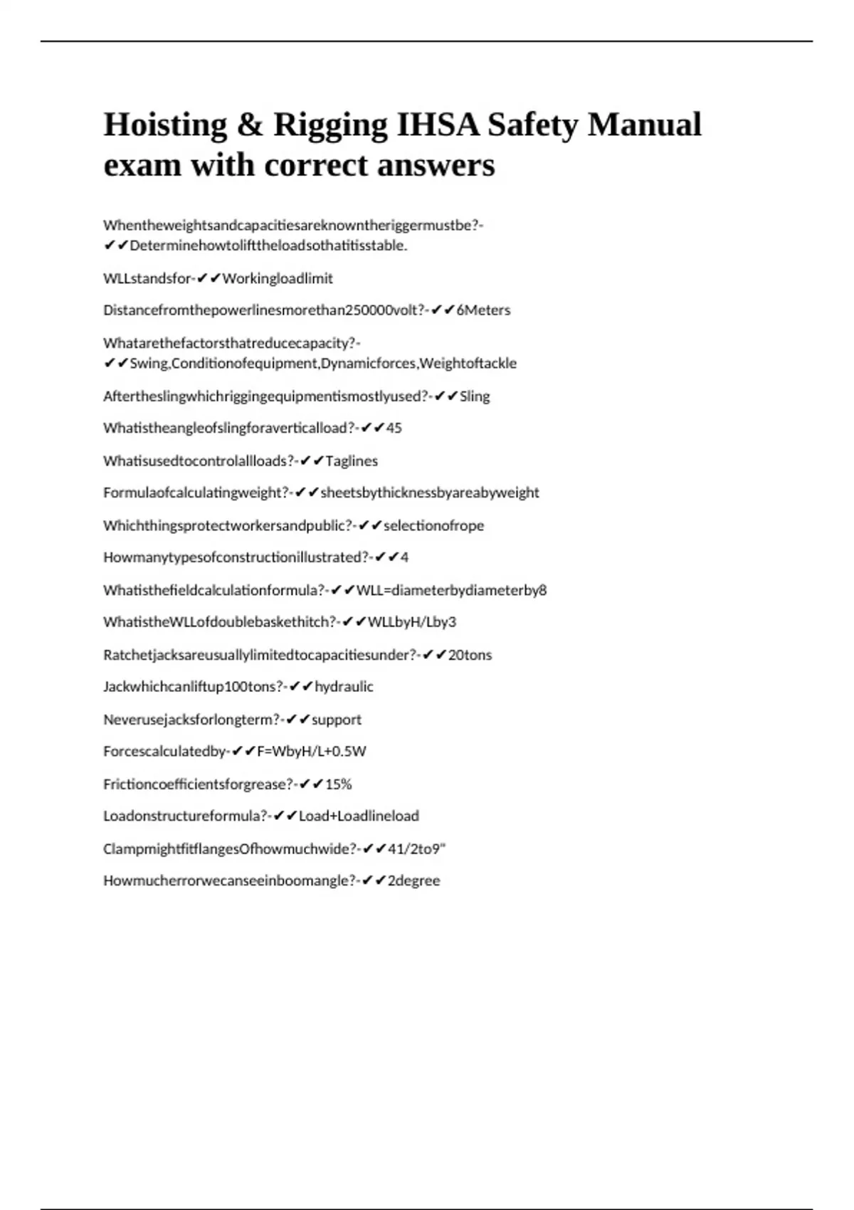 Hoisting & Rigging IHSA Safety Manual exam with correct answers