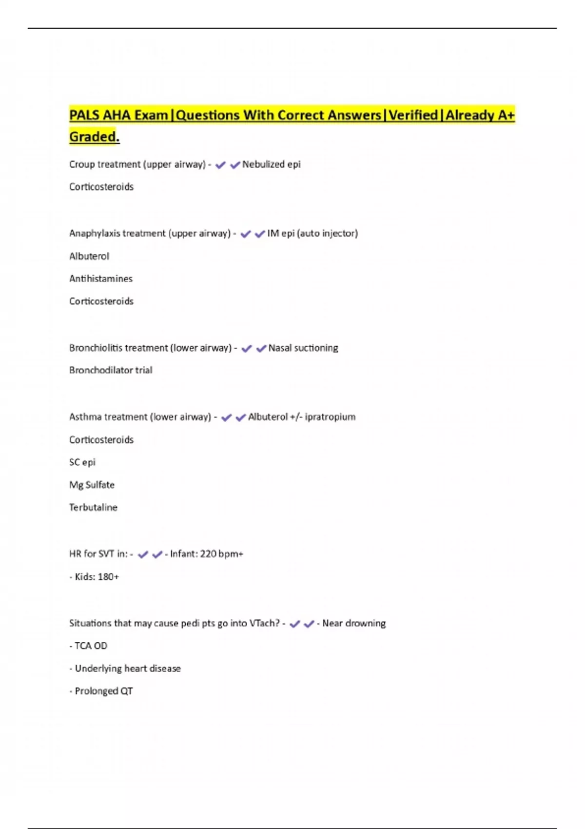 PALS AHA Exam|Questions With Correct Answers|Verified|Already A+ Graded.