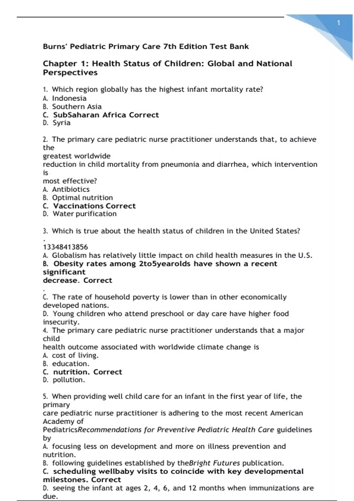 Test Bank For Burns Pediatric Primary Care 7th Edition.