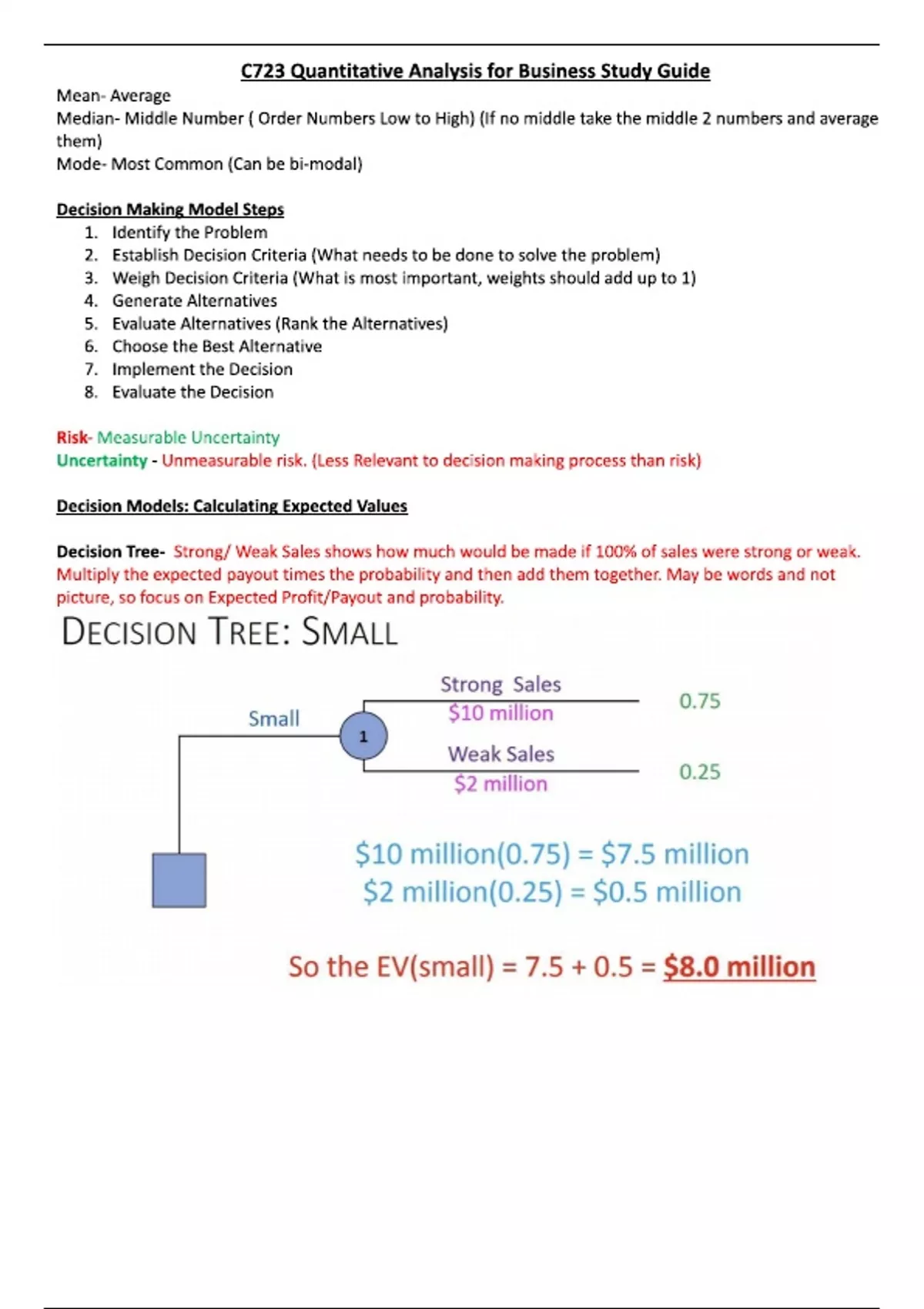 Summary C723 Quantitative Analysis for Business Study Guide WGU 2025 With Correct Answers | VERIFIED SOLUTIONS.