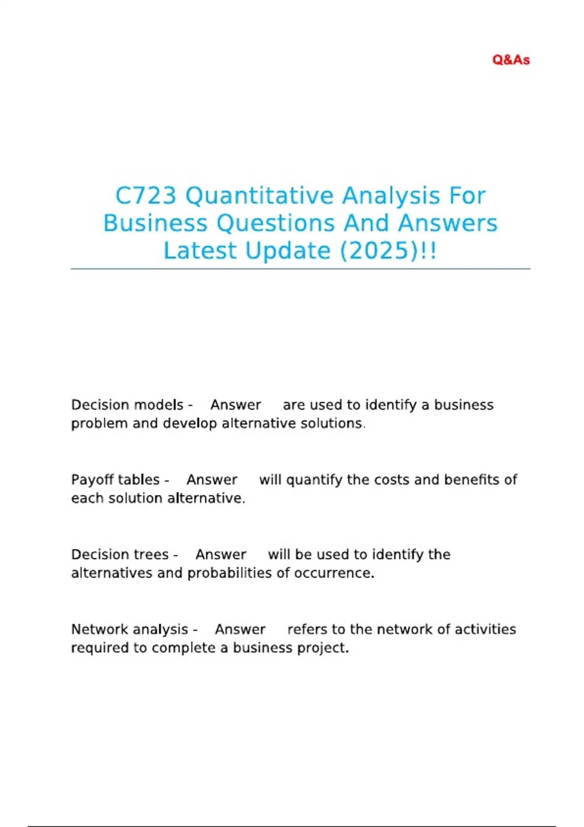 C723 Quantitative Analysis For Business Q&A Overview WGU 2025 With Correct Answers | VERIFIED SOLUTIONS.