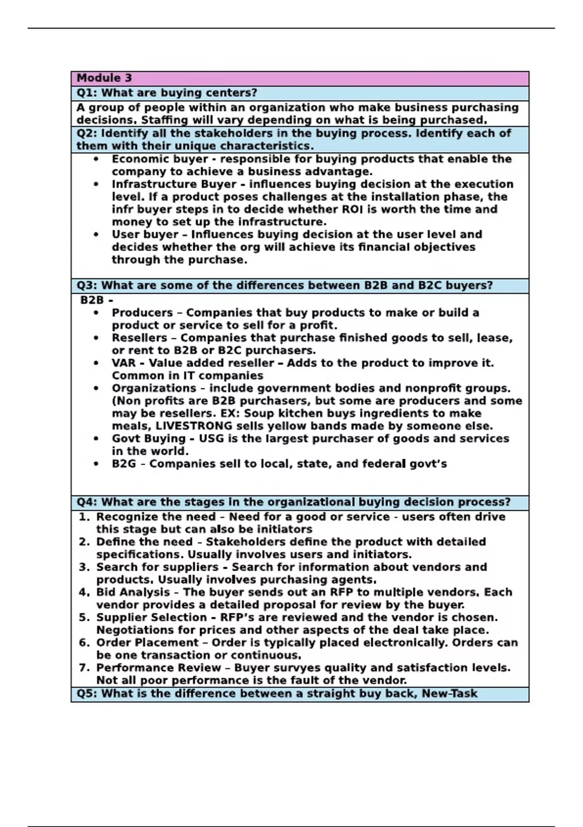 Summary D099 Sales Management Study Guide 3,5,7,11,12 WGU 2025 With Correct Answers | VERIFIED SOLUTIONS.
