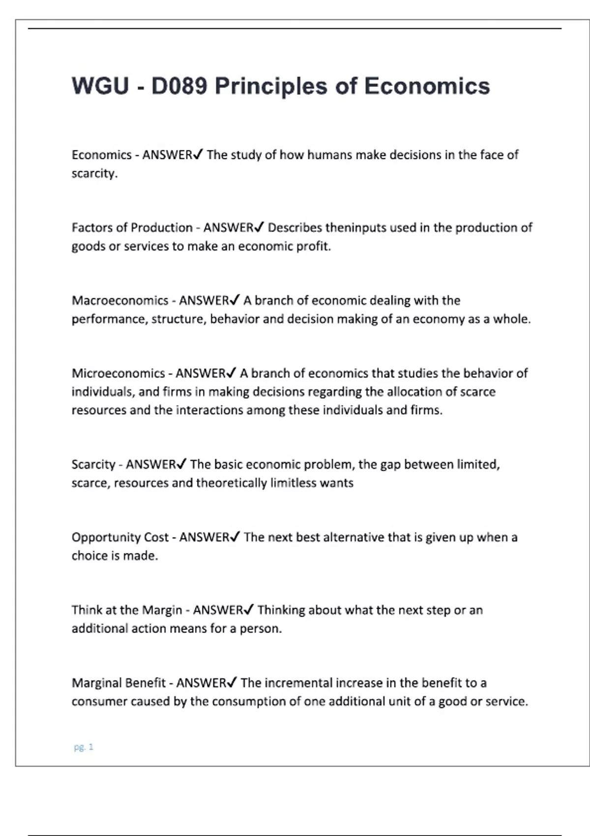 D089 Principles of Economics WGU 2025 With Correct Answers | VERIFIED SOLUTIONS.