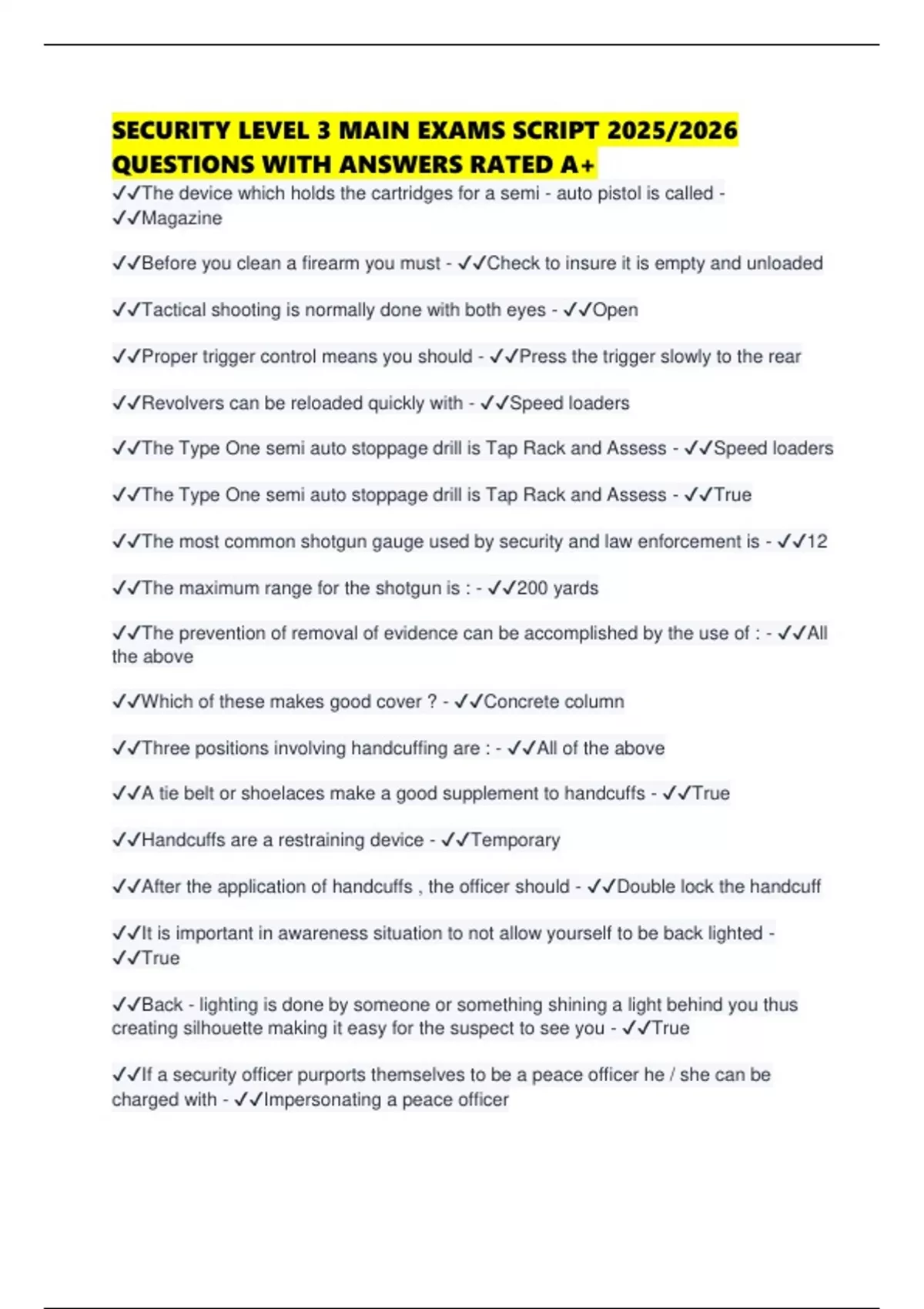 ✔✔The most common shotgun gauge used by security and law enforcement is - ✔✔12